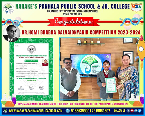 We are thrilled to share the incredible news that one of our bright stars, Mast. Yashraj Patil from std-6th, has achieved a Certificate in the prestigious Homi Bhabha Balvaidnyanik Competition 2023-2024 held at Usha Raje Girls High School, Kolhapur!