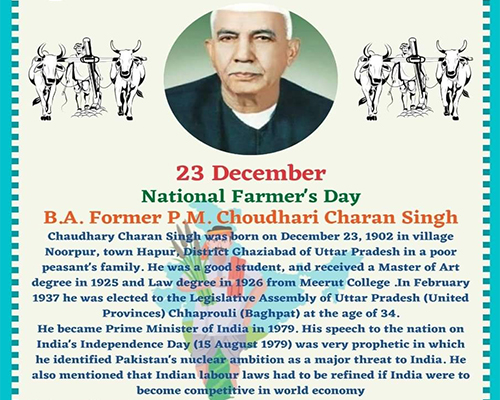 National Farmer's Day, or Kisan Diwas, is observed on December 23 in India to recognize farmers as the backbone of the country. The day commemorates the birth anniversary of India's former prime minister Chaudhary Charan Singh