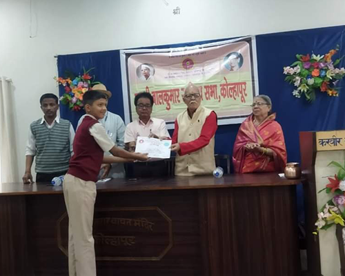 मराठी बालकुमार साहित्य सभा कोल्हापूर यांच्यावतीने विद्यार्थ्यांसाठी कथा, कविता, निबंध स्पर्धा 25 नोव्हेंबर 2023 ला घेण्यात आल्या. या स्पर्धेचे यशस्वी मानकरी खालील प्रमाणे :-