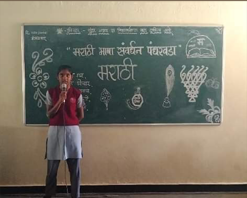 समारंभात स्वागत गीत, सुविचार, चारोळी, घोषवाक्य, सुभाषित, समूहगीत, कविता गायन, अभंग, भक्ती गीत, श्लोक, मराठी नाटिका, प्रश्नमंजुषा व विद्यार्थ्यांची भाषणे इ. उपक्रम साजरे करण्यात आले. मराठी भाषा संवर्धन पंधरवडा उपक्रमात निबंध स्पर्धा, भाषण स्पर्धा, हस्ताक्षर स्पर्धा, साहित्य लेखन, साहित्य विषयक प्रदर्शन, प्रश्नमंजुषा घेण्यात आले.