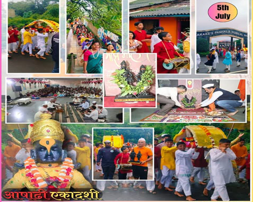 नरकेज् पन्हाळा पब्लिक स्कूल अँड ज्युनिअर कॉलेजमध्ये आषाढी एकादशीचा सोहळा मोठ्या भक्तीभावाने साजरा करण्यात आला. यावेळी विद्यार्थी व शिक्षकांनी विठ्ठलाचे नामस्मरण आणि टाळ-मृदुंगाचा गजर करत उत्स्फूर्तपणे भाग घेतला. यामुळे शाळेतील वातावरण भक्तिमय झाले होते.