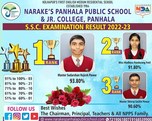 Master. Sudarshan Rajesh Powar from class 10 has topped the class & scored 93.80%.