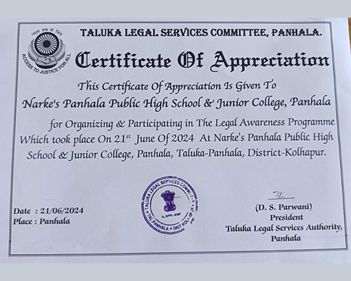 विद्यार्थ्यांना शालेय अभ्यासक्रमासोबतच कायदेविषयी माहिती असणे अत्यंत आवश्यक आहे याच उद्देशानेे आज नरकेज पन्हाळा पब्लिक स्कूलमध्ये विधी साक्षरता अभियानांतर्गत मार्गदर्शन व्याख्यान आयोजित करण्यात आले होते. या कार्यक्रमासाठी प्रमुख पाहुणे म्हणून पन्हाळा न्यायालयाचे न्यायाधीश श्री.डी एस. पारवाणी सर,ॲड. शिवाजी पाटील सर, ॲड. श्री. विश्वास पाटील सर उपस्थित होते.
