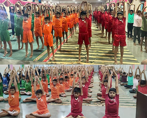 The morning was vibrant with energy and fitness as students engaged in various yoga exercises, promoting strength, flexibility, and mental well-being. This enriching session was conducted under the expert guidance of rectors.
