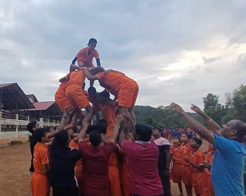 Let's embrace the spirit of unity and teamwork as our students come together to form these magnificent pyramids.